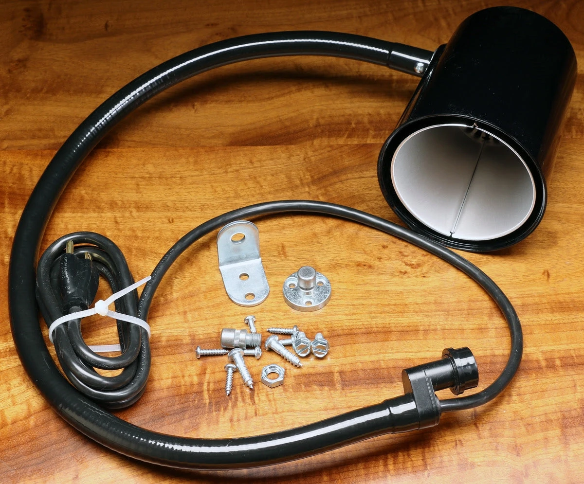 Desk-mounted light for tying. Mounted via screw or c-clamp. Flexible to get good angles around your vise.